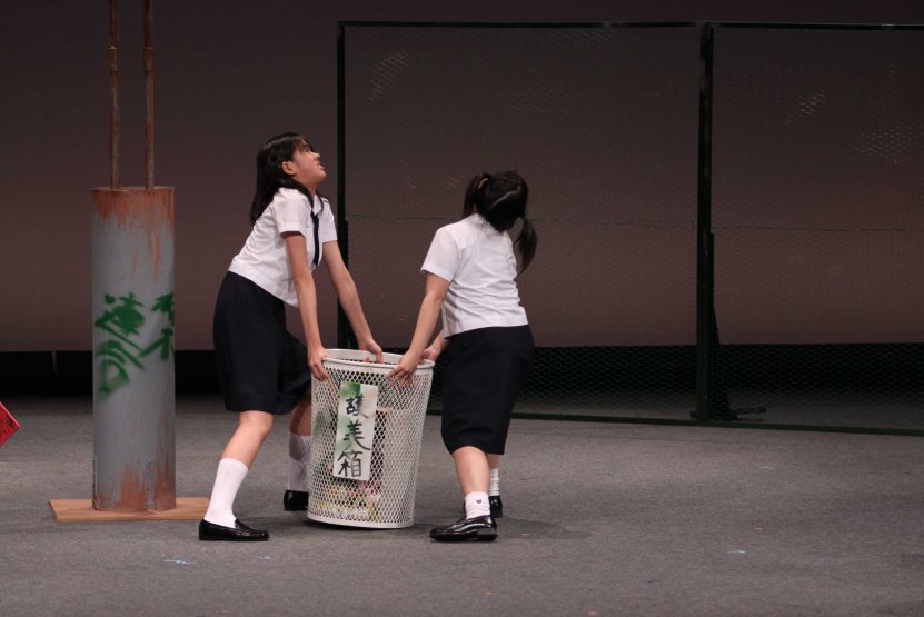 ○黒瀬貴之(広島県・40代・男) 【舞台のスケッチ 真ん中にある時計に「もう少し奥か、上手にあった方がいいかな……」】 素朴で、でもどこか都会的センスも感じさせる、ステキな舞台でしたね。 夕方の公園にやってくる3人のサイトウさんは、それぞれに居場所を見失っている。その居場所は、他人から見れば、たわいないものかもしれない。自分すらきちんと意識していなかったようなものかも。そして、とてももろいもの。失って初めてわかるもの。 3人がじゃれ合うような会話を交わしながら、かろうじて互いを支え合っている姿が、かわいくて切なく、胸に染みました。3人がそれぞれに個性的。特に齋藤綾子さん(たしかに画数多い)の(天然の)存在感! セリフもおもしろくて(「理由はいっぱいあると思いますよ」とか)よかったです。 ラスト、彼女たちの何が変わり、どんな思いで公園を出て行ったのか、がわかりにくかったな、とも思いますが……うーん、それでもいいのかな? とにかく、ステキな舞台でした。 一年生ばかりのクラブ、これからがますます楽しみです。ありがとうございました。 ○おかべあつし(岩手県・40代中盤・男) 文化祭の後夜祭を抜け出した三人のサイトウさんが「ある場所」で出会います。三人は同じ学校、同じ学年ではあるけれど、制服を着ていなければきっと気づかない三人……。共通しているのは、その場所に流れていた音楽の記憶……。 ドラマなんか無くっていい、三人が素敵に存在していました。他愛のない会話のやりとりから三人のキャラクターが立ってきました。 壊れて止まったままの時計は、決まった時間に流れるはずの音楽を流すことなく、そこにある。その時計がまだ動いていた頃、夏の夕暮れ、時計から音楽が流れ出すと、どんなに明るくても子供たちは家へ帰っていった。まだまだ滑り台やブランコで遊んでいたいのに……。 大きなドラマが展開する芝居ではない。三人のサイトウさんがもう聴くことはない、駐車場になってしまう公園に設置された止まったままの時計からの音楽を思い出すとき、彼女たちはまたそれぞれの場所に帰っていく。16歳の文化祭の後夜祭をさぼって出会った小さな思い出とともに……。 間違っているかもしれませんが、私はそんな風に感じました。(オジサンである私の感性なんてそんなもんです‐笑‐) 余談ですが、閉会式後、暗くなって街灯に照らされた倉敷の美観地区を歩きながら、宇中女の芝居を思い出し、ちょっと切なくなったりしました。確かに私は大切な時間を感じることができました。ありがとうございました。 ○グレープフルーツ(岡山県・10代後半・男) 役者がとても上手かったです。自然な演技で笑わせてもらったし、シリアスなシーンには見入りました。セットも、正直すべり台に乗れるとは思ってませんでした。すべり台を使った演出やゴミ占いはとても面白いと思いました。ぼくの中で一番好きなのは、次郎さんでしたけど。 全員一年生というのにも驚きです。部員全員、能力高いなぁと思いました。これからも色々な芝居をしていくと思います。全ての芝居に全力でがんばって下さい。ぼくらも負けないようにがんばります。全国大会、本当にお疲れさまでした。 機会があれば、宇都宮のギョウザを食べたいです。 |
