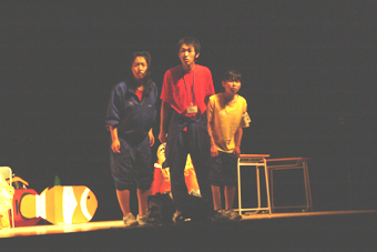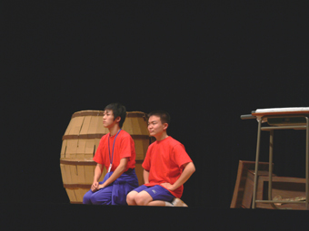 ○亀尾佳宏(島根県・30代・男) まず初めに気になったことから。幕が開いてすぐの小林・真田のやりとり。客席の笑いが先走っているような気がして、少々舞台に入り込みにくかった。雑然と並ぶ道具類も、なんだか空間を平板にしているようで、特に舞台奥の廊下(?)とおぼしきスペースがよくわからなかった。 ――しかし、劇が進むと、そんな小さなことはどうでもよくなった。とにかくおもしろい! 変な道具の中にかくれている小林の心情を思うと、ハラハラした。そして、かくれて聞いていた「乙女心」を、しっかり告白に生かしてしまう素直さ。黒ひげのたるから出てくる場面では、自然と拍手してしまった。 勢いだけでなく、きちんと計算された笑い。客席を巻き込む力強さ。登場人物が全員ストレートで、素直で、やさしくて、それがしっかり無理なく演じられていたことが心地よかった。何よりも、7人の人物で構成されていながら、あの部屋の外の世界、学園祭のフィナーレを迎えようとしている全校生徒の雰囲気を感じさせていたことがすばらしかった。 このメンバーがいたからこそ生まれたお芝居。それが客席と一体となって、かけがえのない空気を生み出す。これぞ高校演劇の醍醐味。「恋愛」という高校生にとっての最大の関心事を、豪速球で投げ込んだその潔さに拍手をおくりたい。 とびっきりうまい役者がいるわけでもなく、とびっきりうまいセットがあるわけでもないが、とびっきりおもしろい芝居だった。 ○岡田(広島県・40代後半・男) 青春は残酷だ。残酷だから応援したくなる。そんなお芝居だった。 かなわぬ思い、かなえたいが一歩踏み出せない。誰かに背中を押して欲しくて欲しくてたまらない。何かの力を借りてでも伝えたい。そして一歩進む出すとあふれ出すエネルギー。うれしはずかし青春の一コマ。 いいですねぇ。自分の若かった頃を思い出しました。学校行事という非日常の時のワクワク感、ドキドキ感。伝わってきました。男の子って、鈍感さもいいですね。 観る人によっては,すこしやりすぎなのかなって言う部分もあるかもしれませんが、そんなことも吹っ飛ぶ好演でした。 お疲れ様でした。 ○北川雄也、門田寛生(岡山県・10代中盤・男) 劇全体のテンポがとても良くて、1時間とっても楽しく過ごせました。 人に何かを伝えることの難しさを切実に感じました。人に告白するのって、大変ですよね……。周りの人も多少巻き込まれてしまいますし、いやぁ、青春って大変ですね!! 小道具・大道具の使い方が上手で、とても感動しました。イソギンチャクとタルの使い方が、神です!! イソギンチャクの中に垂れ幕を力いっぱい入れたときは、「ぁ、中の人死んだ……」と思いました。中の人、おつかれ様でした!! 人に何か‐今日で言えば、誰にも気付かれないような仕事‐を認められることは、すごく嬉しいことだし、大切なことだと思います。多分、会長や生徒会の人が誉めていることを真田くんが知らないままだったら、告白してたと思います。それぐらい大切なことだと思います。あくまで個人的ですけど。 最後は運命の始まり、だと信じてます! |